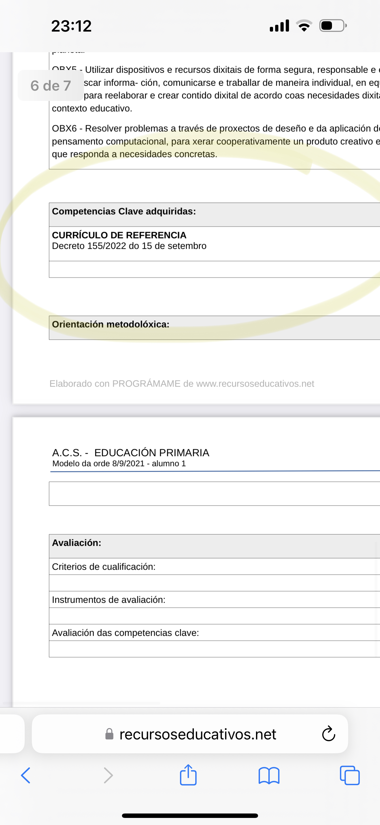Na plantilla da orde do 8 de septembro atopamos un apartado chamado competencias adquiridas, no xerador de ACS non topamos ese apartado, so os obxetivos. Alguén sabe como completar ese aopartado?