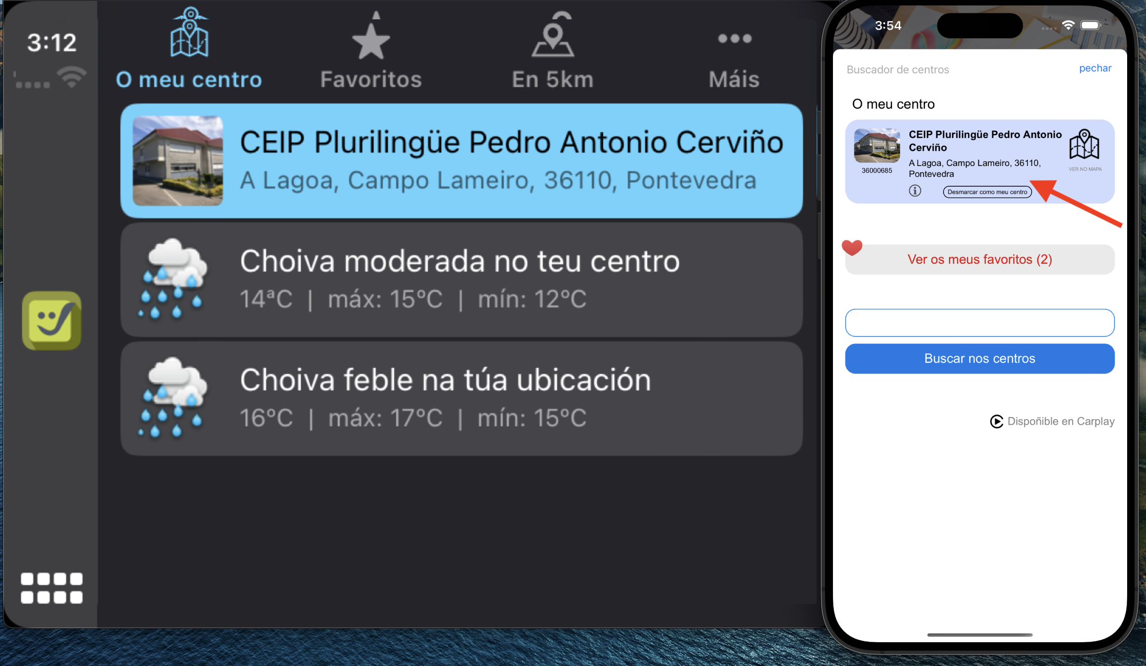 Visualizar os teus centros favoritos: Aqueles que teñas escollidos como favoritos na APP do iphone, no apartado buscador de centros.