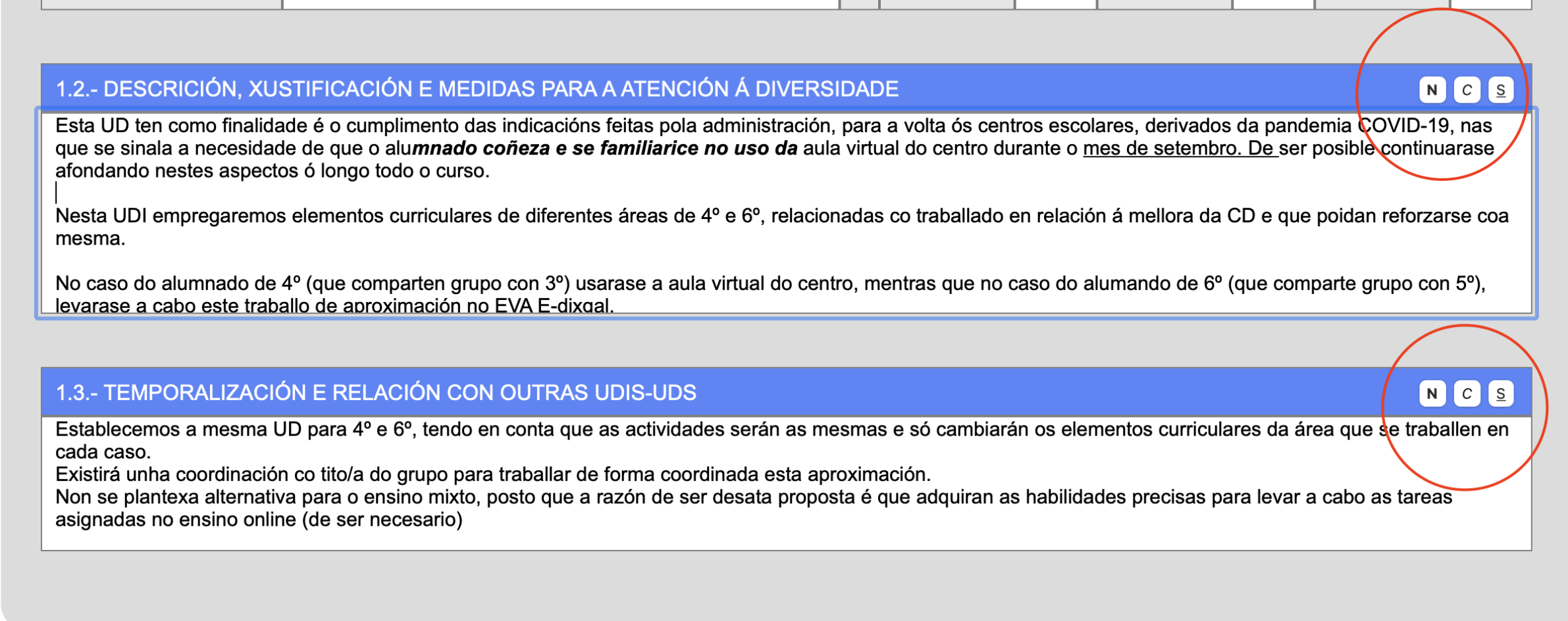 - Nas UDIS en determinadas caixas de texto podes selecionar que parte do mesmo marcar con **negriña, suliñado e cursiva**.