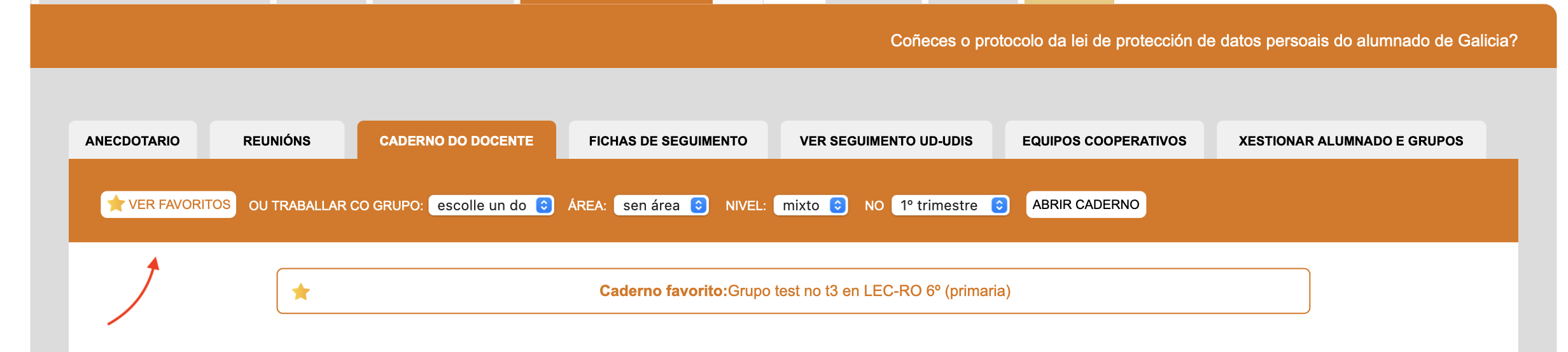 - No **caderno docente** engadida a opción de marcar/desmarcar como **favoritos** os cadernos que se desexen, de modo que poida accederse rápidamente a eles sen ter que escoller nivel, área, curso...